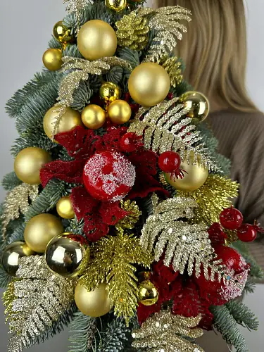 Цветы живые, Новогодняя композиция с нобилисом "Елка с золотым декором"