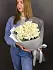 Нежный букет живых цветов из 7 Белых роз с эвкалиптом в дизайнерской упаковке